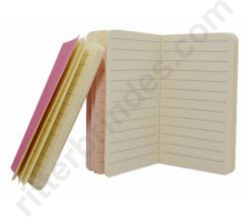 Caderneta pequena, tipo moleskine, com capa plástica.