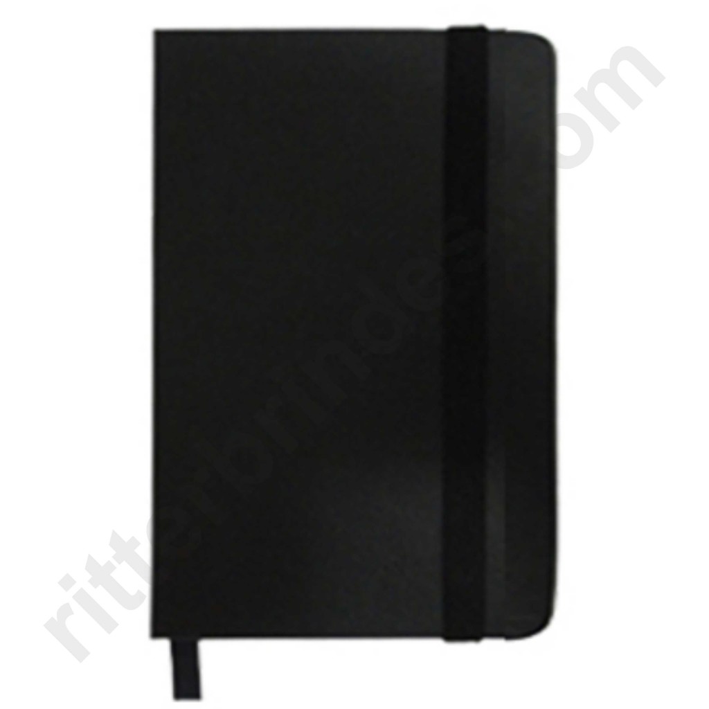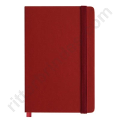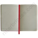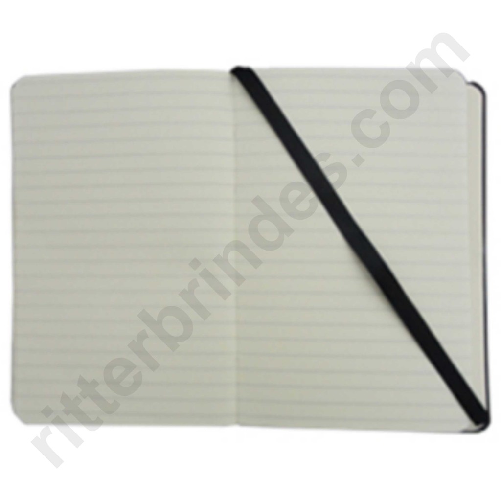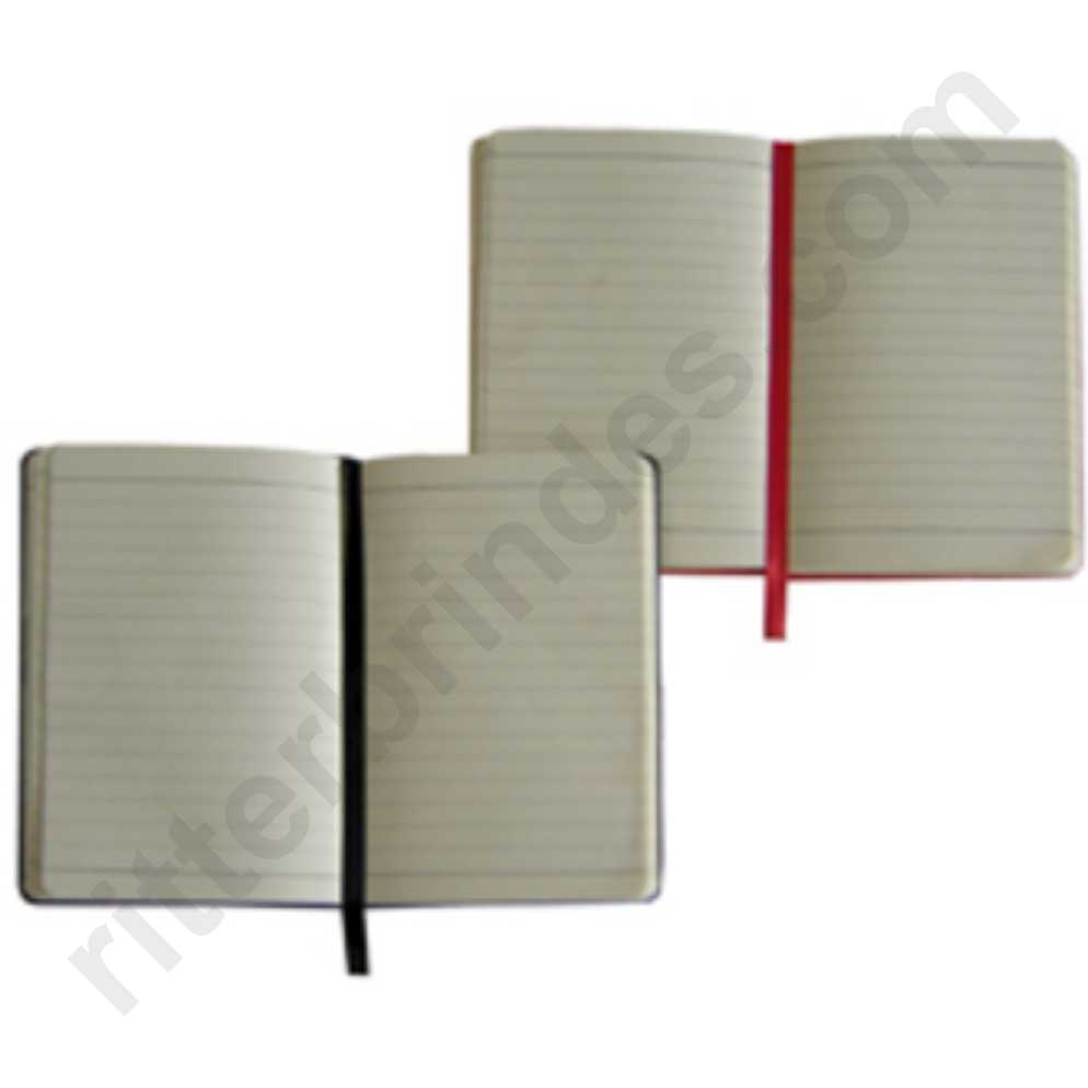 Cardeneta tipo Moleskine, com 100 folhas (na cor creme – amarelo claro), folhas pautadas. Material: Couro sintético liso.