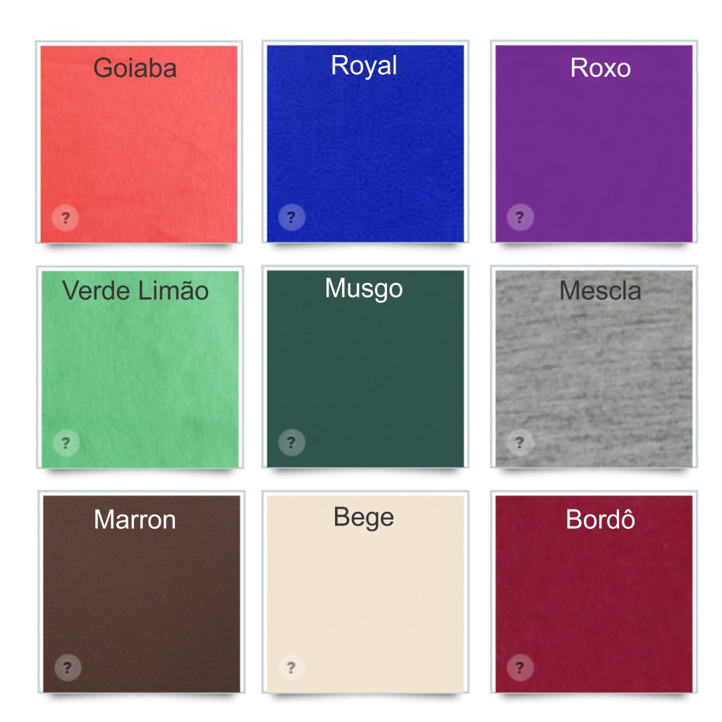 Produzida em várias opções de malhas: 100% algodão, poliviscose, dry, malha pet;