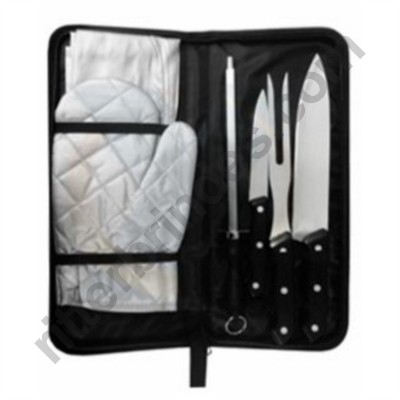 Kit churrasco com 6 peças, cabo de plástico.