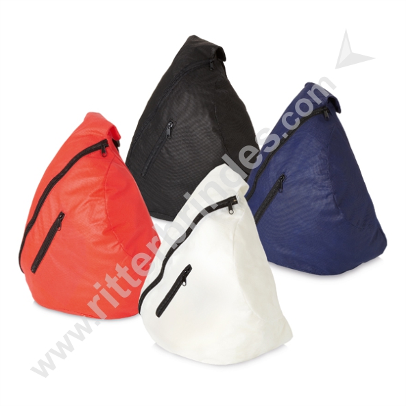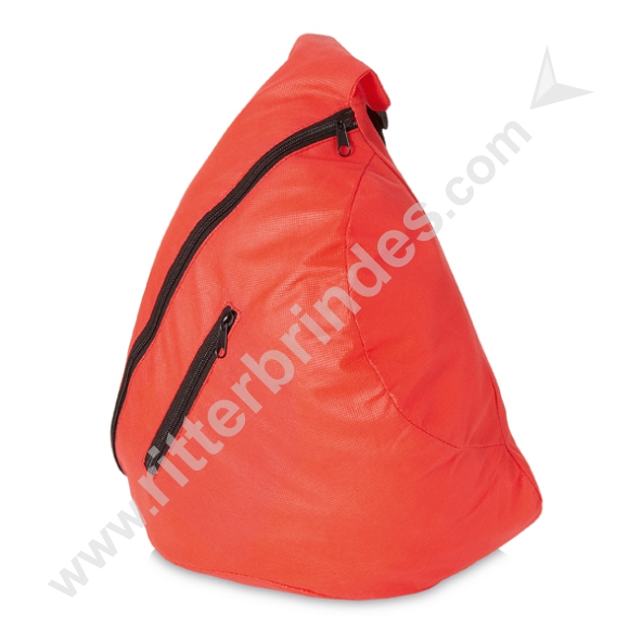 Mochila transversal. Non-woven: 80 g/m². Com bolso frontal. 330 x 470 x 160 mm
