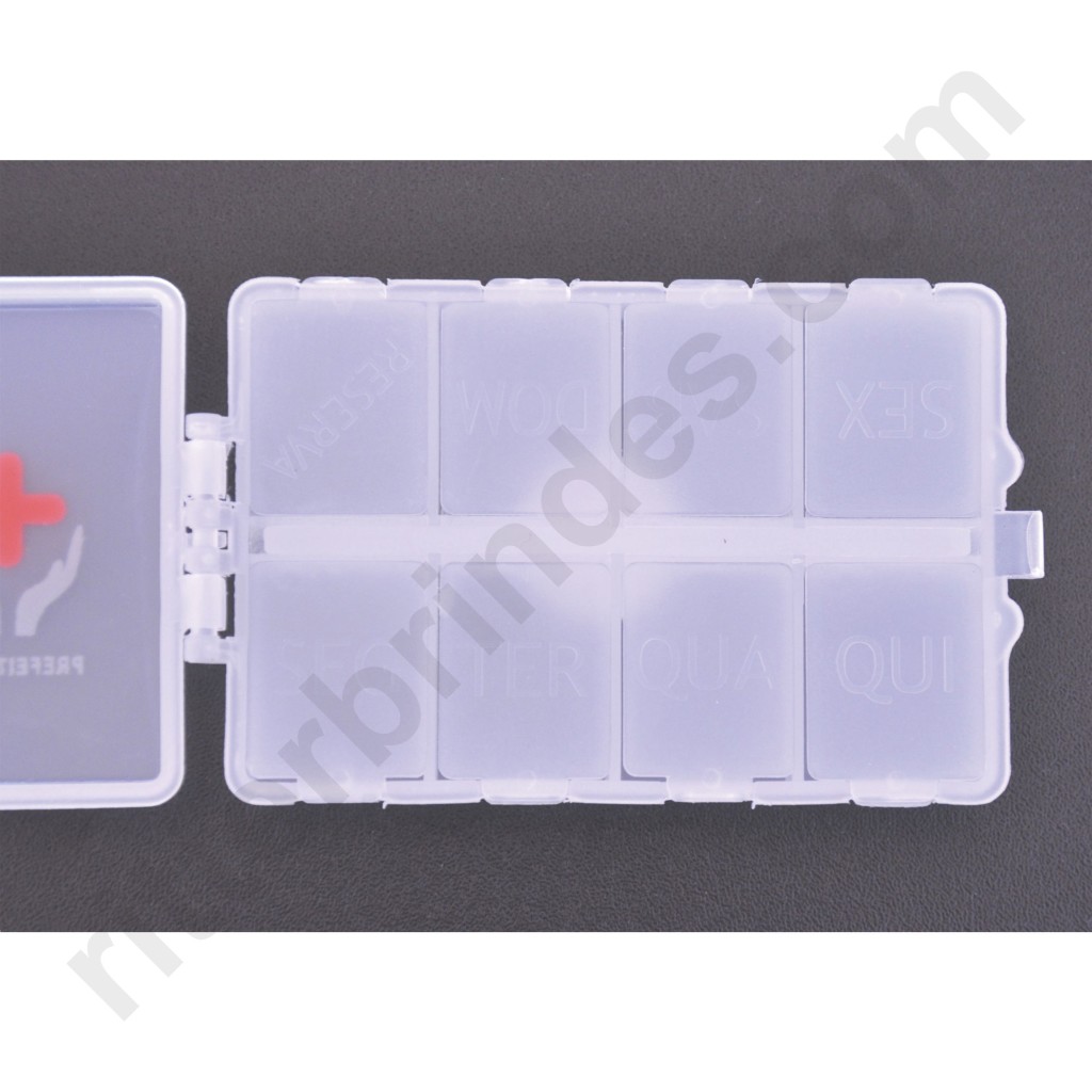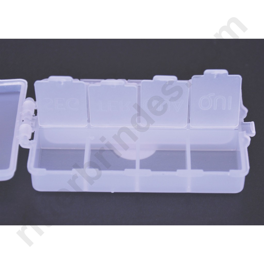 Compartimentos separados e identificados por dias da semana para a melhor organização dos remédios.