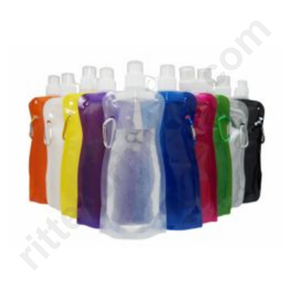 Squeeze dobrável com mosquetão, capacidade para 480 ml.